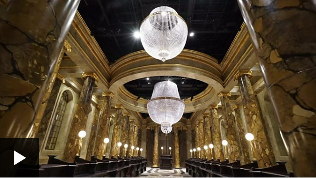 来看看古灵阁魔法银行内部庄严神圣的大堂 — 屋顶装有水晶吊灯,两侧矗立着壮观的大理石柱。但这并不是魔法,它就存在于现实生活中。