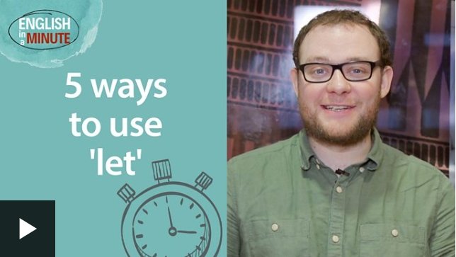 Hi everyone, welcome back to English In A Minute. Today, we’re going to look at 5 different uses of the verb let.