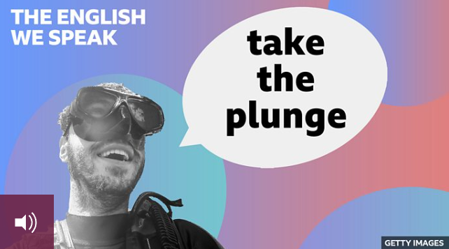Well, we are learning ‘take the plunge’. Now, I heard my friend say this and I thought it was interesting because ‘plunge’ always makes me think about jumping into water and that is definitely not what she meant.