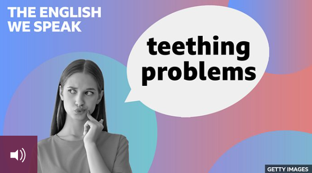 Oh no, I hope it wasn’t too bad. Let’s look at that expression you just used,‘teething problems’. You didn’t hurt your teeth, did you?